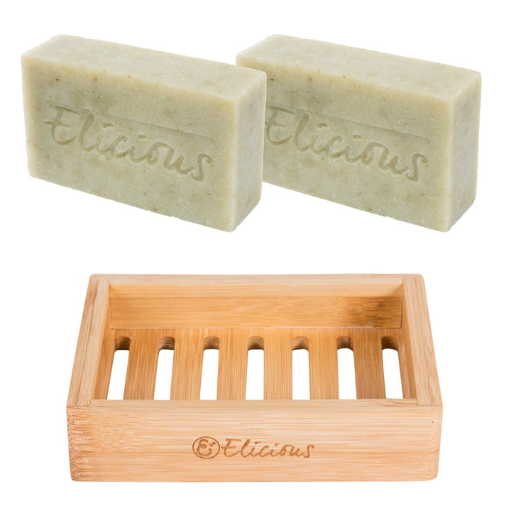 Natuurlijke biologische zeep Myrtle Lemongrass - Set van 2 met duurzaam bamboe zeepbakje