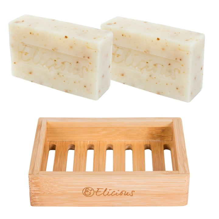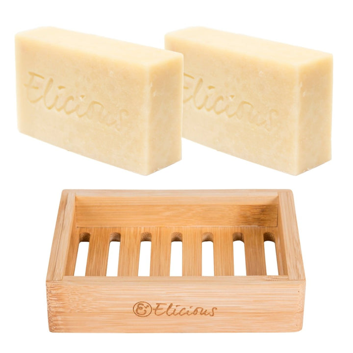 Natuurlijke biologische zeep Soothing Coconut - Set van 2 met duurzaam bamboe zeepbakje