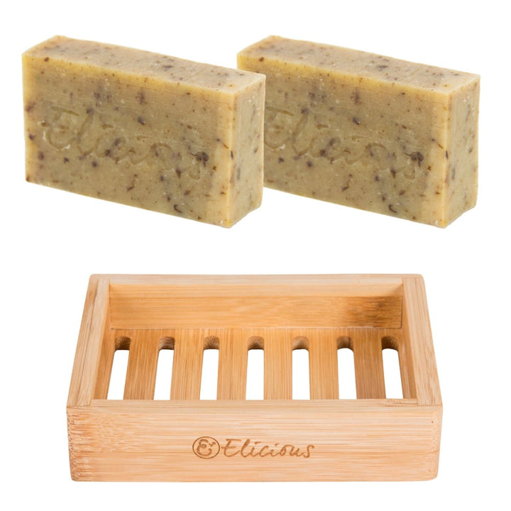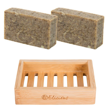 Natuurlijke biologische zeep Volcano Scrub - Set van 2 met duurzaam bamboe zeepbakje