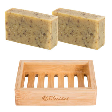 Natuurlijke biologische zeep Lavender Soul - Set van 2 met duurzaam bamboe zeepbakje