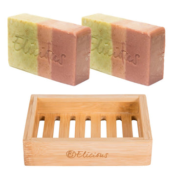 Natuurlijke biologische zeep Triple Citrus - Set van 2 met duurzaam bamboe zeepbakje