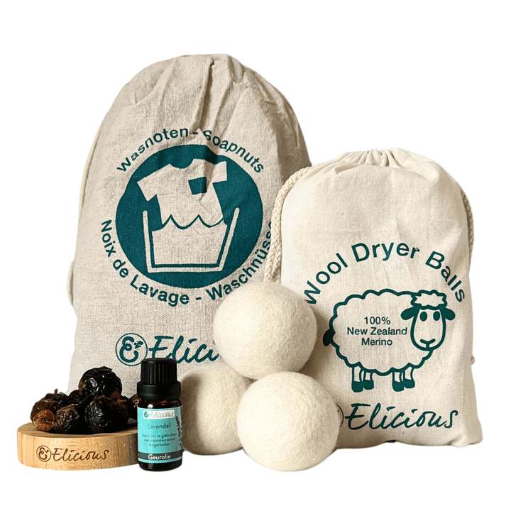 Natuurlijk wassen set – wasnoten, drogerballen & lavendel olie