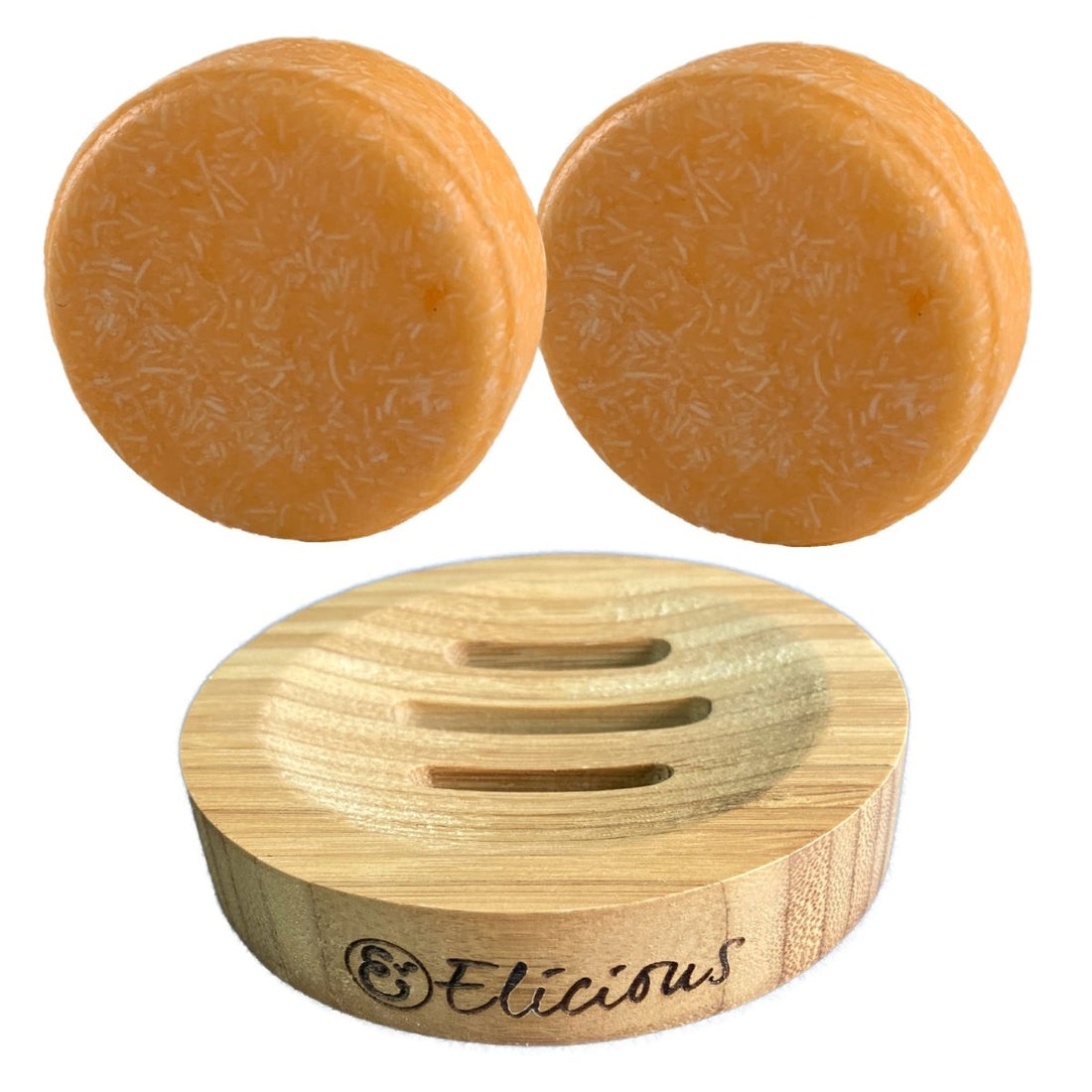 2 Stuks shampoobars voor gekleurd haar Honey Rebel + schaaltje van duurzaam bamboe - Elicious