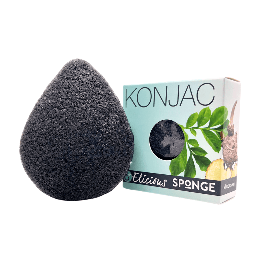 Konjac spons voor het gezicht Charcoal druppelvorm - vette (onzuivere) huid - Elicious
