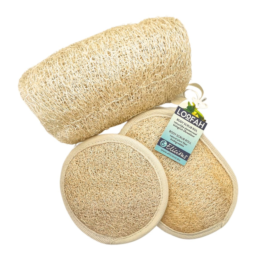 Delightful scrub set with natural loofah products for your skin, consisting of: