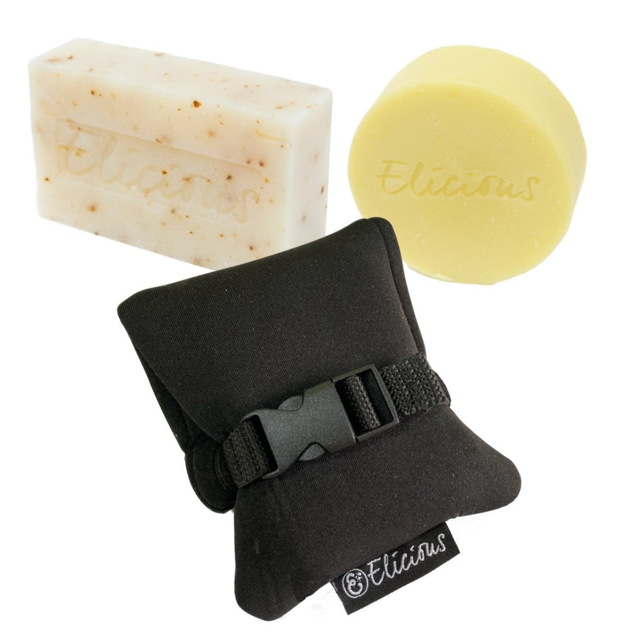 'This Travelbuddy soap and shampoo pouch is a beautiful innovation from Elicious. Suitable for your shampoo bar, your soap bar, or even both in one! The choice is yours.'
