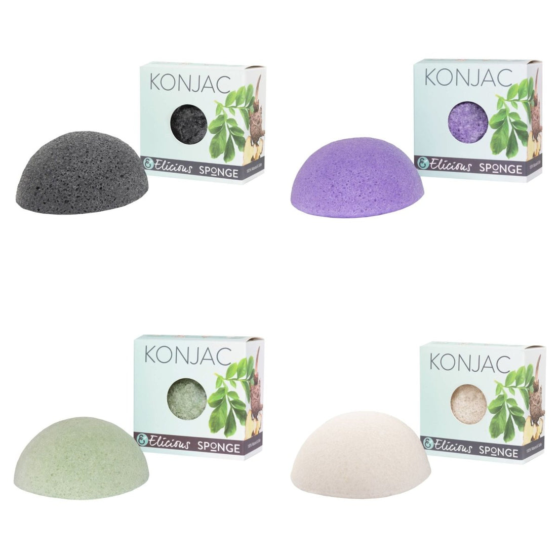 This bundle of natural Konjac facial sponges consists of four different sponges, each suitable for different skin types.
