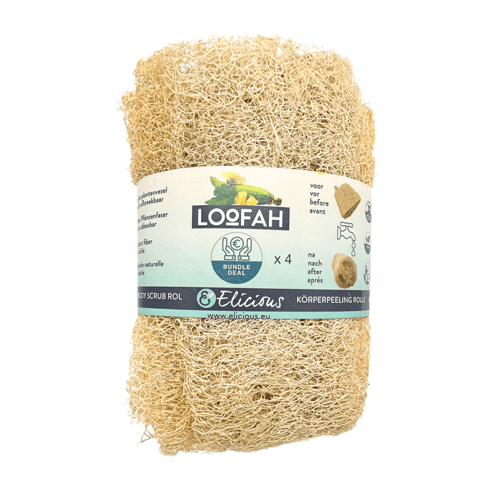 Esponja de Loofah biodegradable - rodillo de exfoliación corporal por 4 unidades