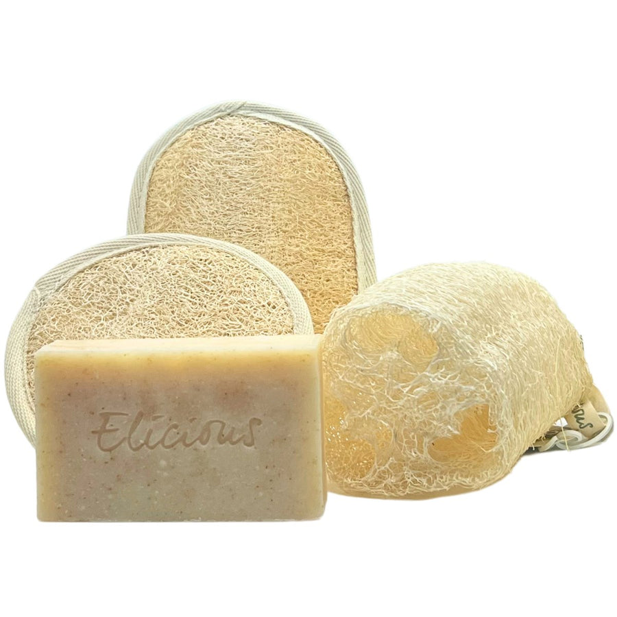 Natuurlijke zeep Relaxing Jasmine & Biologisch afbreekbare Loofah scrub set - Elicious