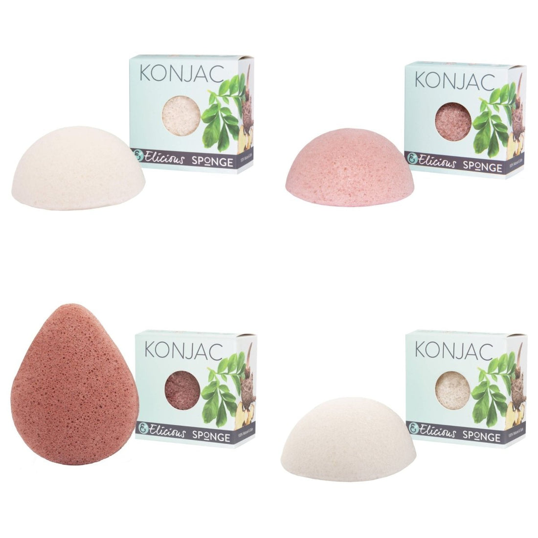 Descubre el paquete perfecto para una piel radiante. Este paquete contiene cuatro esponjas faciales de Konjac naturales diferentes para diversas necesidades de la piel.