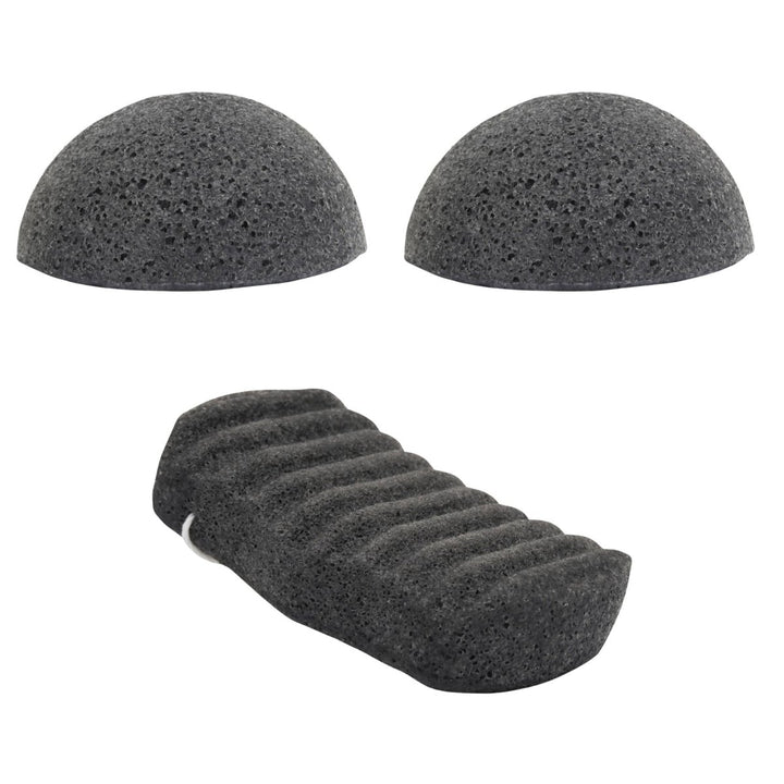 Ensemble Konjac de 2 éponges pour le visage et 1 éponge de bain Charcoal