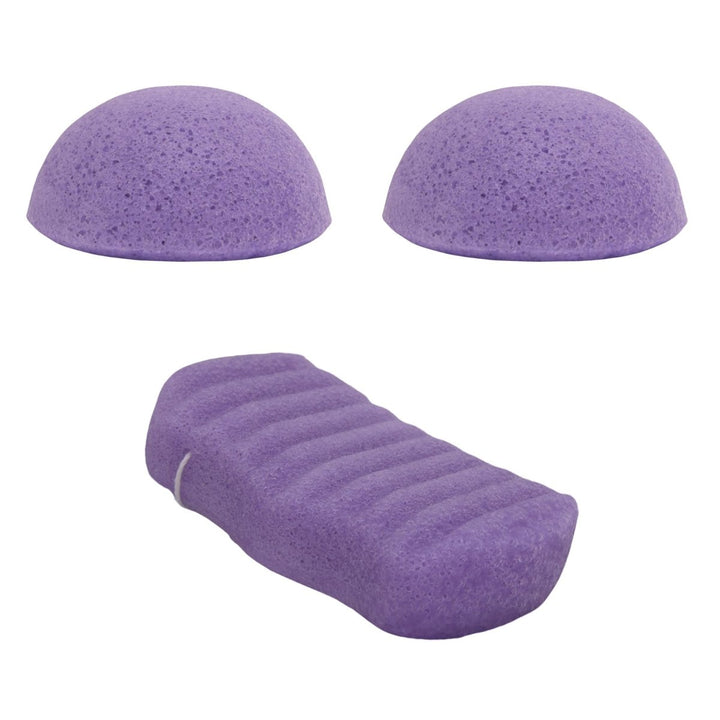 Ensemble de 2 éponges pour le visage et 1 éponge de bain Konjac Lavande