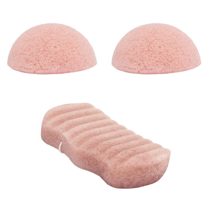 Ensemble de 2 éponges pour le visage et 1 éponge de bain Konjac Lycopeen