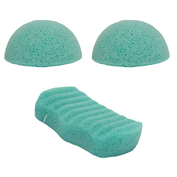 Ensemble de 2 éponges pour le visage et 1 éponge de bain Konjac Menthe
