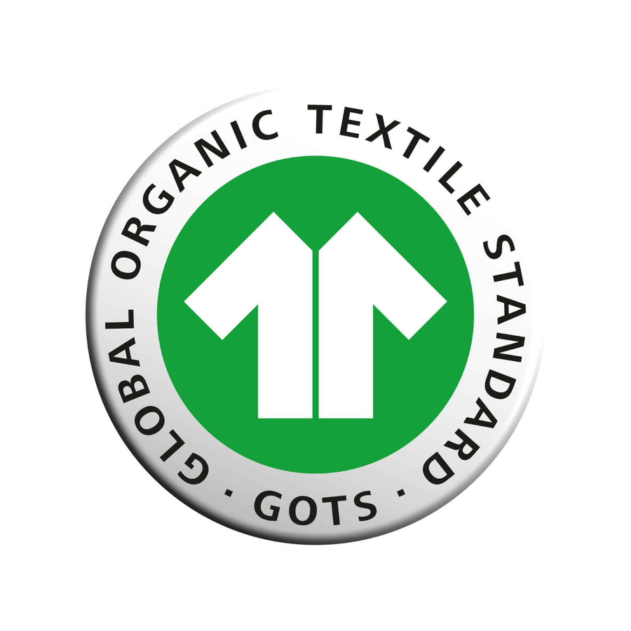 * De GOTS (Global Organic Textile Standard) certificering staat voor ondermeer goede werkomstandigheden in de hele keten, geen kinderarbeid en geen gebruik van pesticiden.